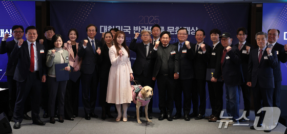 3일 서울 중구 롯데호텔에서 열린 2025 대한민국 반려동물 문화대상에서 수상자들이 기념촬영을 하고 있다. 2025.12.3/뉴스1 © News1 김명섭 기자