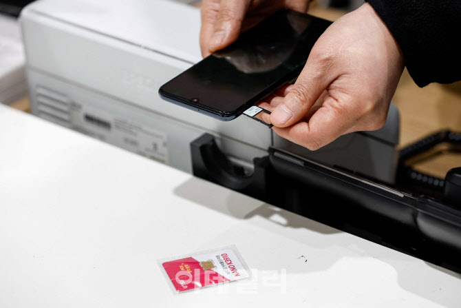 [이데일리 방인권 기자] 20일 오전 서울시내 LG유플러스 대리점을 찾은 고객들이 유심칩 교체를 하고 있다.