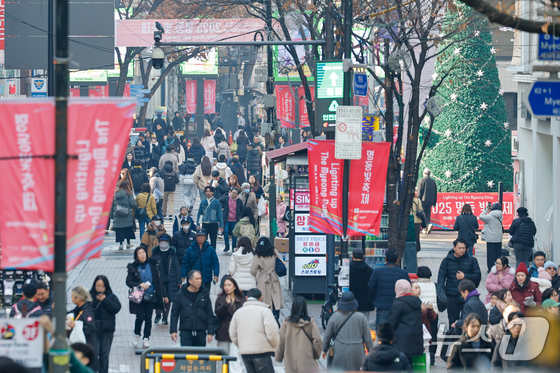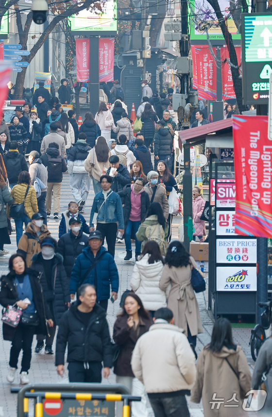 무비자 입국과 중일 항공편 취소 여파 등으로 유커(중국인 관광객)가 늘고 있는 7일 서울 중구 명동거리가 관광객들로 북적이고 있다. 2025.12.7/뉴스1 © News1 안은나 기자