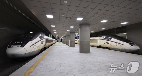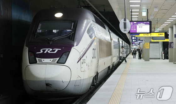 정부가 이원화된 고속철도 KTX와 SRT를 내년 말까지 통합하는 방안을 추진한다. 정부는 우선 내년 3월부터 서울발 KTX-1(20량, 955석) 등 일부를 수서역에 투입한다. 이후 6월에는 KTX와 SRT 열차를 서울역과 수서역을 구분하지 않고 혼합 편성해 운행하는 시범사업을 실시하고, 이후 본격 확대 여부를 결정한다. 사진은 8일 서울 강남구 수서역에서 출발 대기중인 SRT 열차. 2025.12.8/뉴스1 © News1 구윤성 기자
