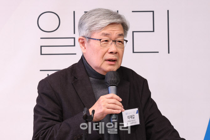 이재갑 전 고용노동부 장관(수원대 석좌교수)이 8일 오후 서울 중구 통일로 KG하모니홀에서 열린 ‘제3회 좋은 일자리 포럼’에서 ‘이재명 정부의 고용노동정책 방향과 과제-고용정책을 중심으로’ 주제로 발제를 하고 있다.(사진=이데일리 이영훈 기자)