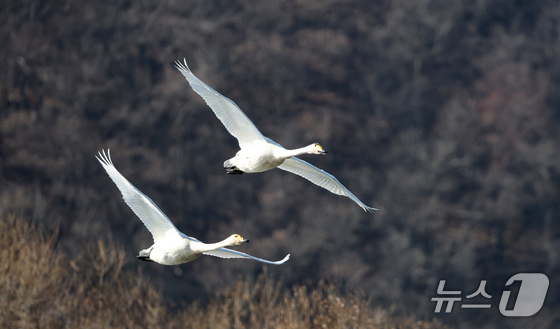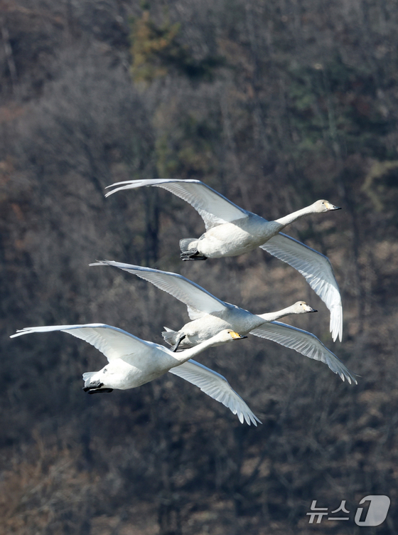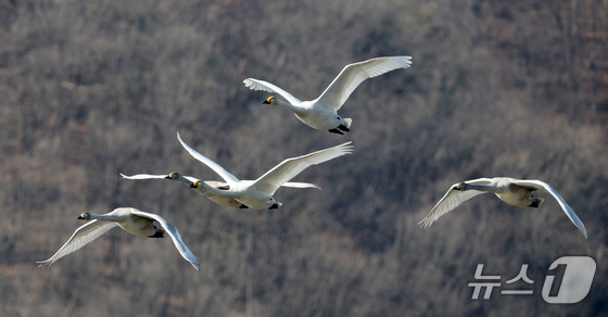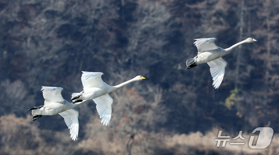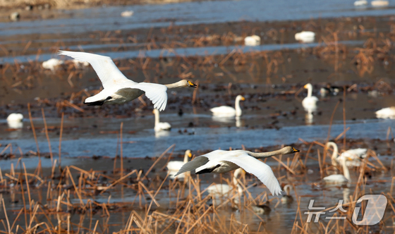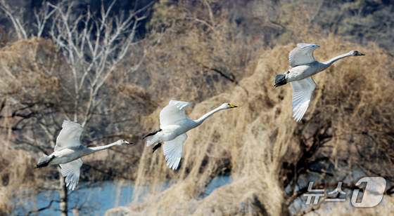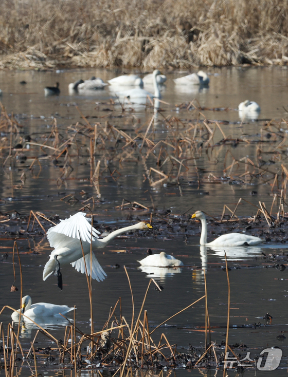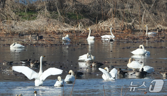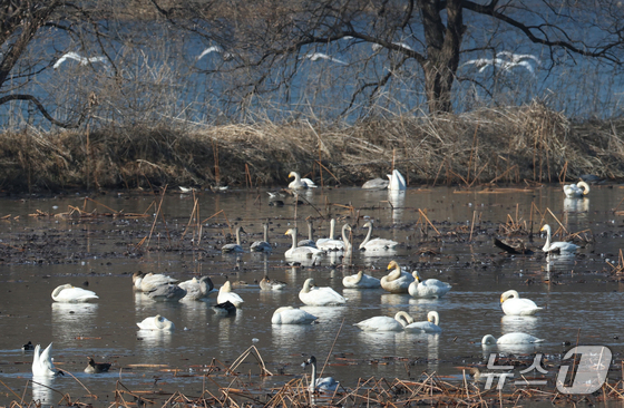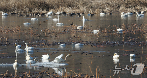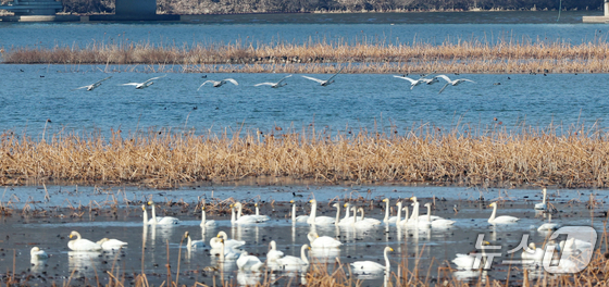 8일 경기 광주시 경안천습지생태공원에서 천연기념물 큰고니(백조)가 포착됐다.