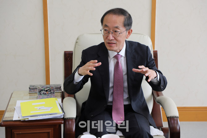 한규현 특허법원장이 8일 이데일리와 인터뷰를 하고 있다. (사진=특허법원)