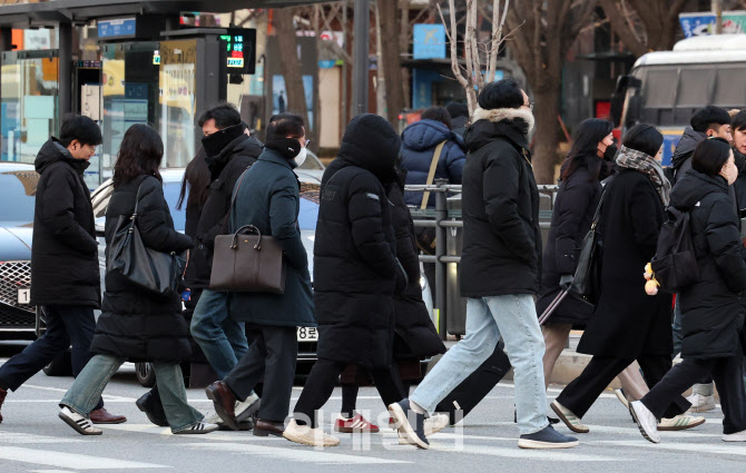 서울의 아침 기온이 영하 8도를 보이며 강추위가 찾아온 지난 3일 오전 서울 종로구 광화문 네거리에서 두꺼운 옷을 입은 시민들이 발걸음을 재촉하고 있다.(사진=뉴시스)