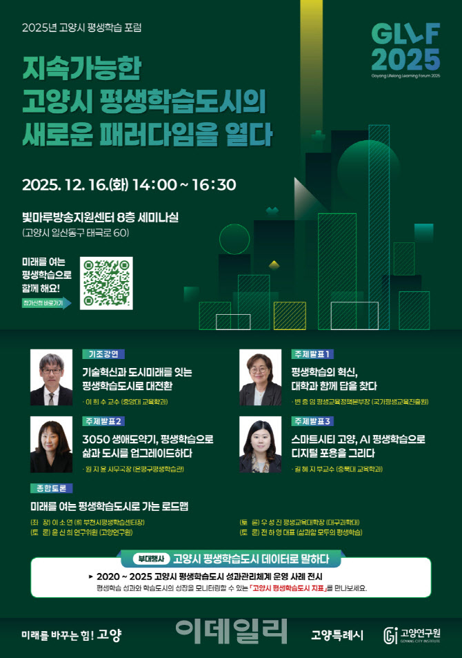 경기 고양특례시는 오는 16일 오후 2시, 빛마루방송지원센터 8층 세미나실에서 ‘2025 고양시 평생학습 포럼(GLLF 2025)’을 개최한다고 12일 밝혔다.