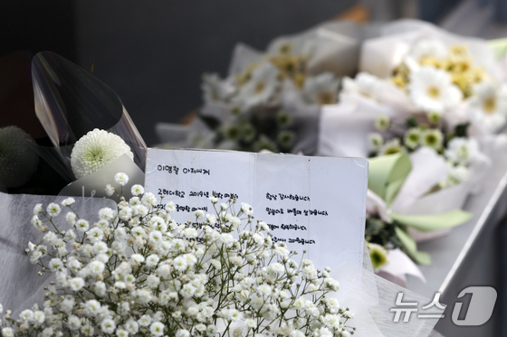 14일 오전 서울 성북구 안암동 영철버거 앞에 영철버거 대표 이영철 씨의 별세 소식을 추모하는 편지와 꽃이 놓여져 있다. 2025.12.14/뉴스1 © News1 황기선 기자