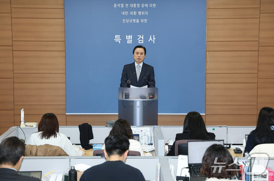 조은석 특검이 15일 서울 서초구 서울고검에서 윤석열 전 대통령의 비상계엄 선포 동기와 최초 준비 시점 등을 포함한 수사 결과를 발표하고 있다. (공동취재) 2025.12.15/뉴스1 © News1 박지혜 기자