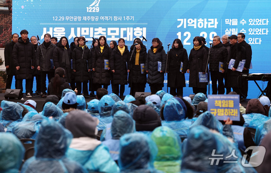 20일 오후 서울 종로구 보신각 앞에서 열린 '12·29 무안공항 제주항공 여객기 참사 1주기 전국 시민 추모대회'에서 세월호 참사 희생자 유가족들로 구성된 416합창단이 공연을 하고 있다. 2025.12.20/뉴스1 © News1 구윤성 기자