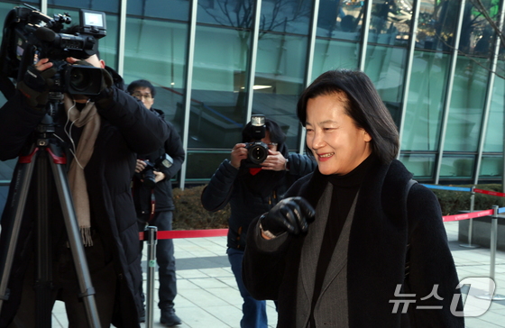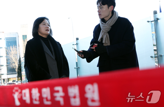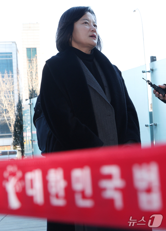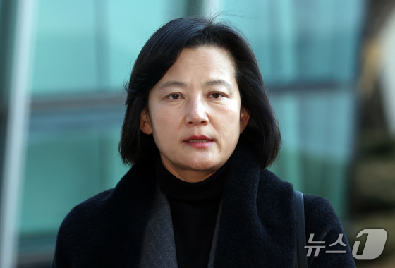 최근 법무부 인사에서 고검검사급 보직으로 사실상 강등된 정유미 검사장이 22일 오전 서울 서초구 서울행정법원에서 열린 인사 효력을 멈춰달라며 낸 집행정지 신청 심문기일에 출석하고 있다. 2025.12.22/뉴스1 © News1 김명섭 기자