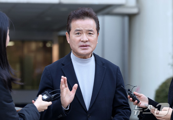 통일교 금품수수 의혹을 받는 전재수 전 해양수산부 장관이 19일 서울 서대문구 경찰청 국가수사본부로 조사받기 위해 출석하고 있다. (공동취재) 2025.12.19/뉴스1 © News1 이호윤 기자