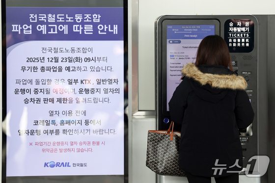 전국철도노동조합(철도노조) 총파업을 하루 앞둔 22일 서울역에 파업 관련 안내문이 설치돼 있다. 2025.12.22/뉴스1 © News1 황기선 기자