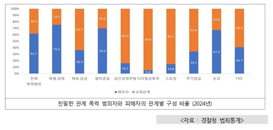 친밀한 관계 폭력 범죄자와 피해자의 관계별 구성 비율(성평등부 제공)