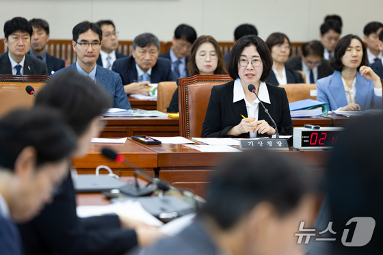 이미선 기상청장이 서울 여의도 국회에서 열린 기후에너지환경노동위원회의 기상청 등에 대한 국정감사에서 의원 질의에 답하고 있다. 2025.10.17/뉴스1 © News1 유승관 기자