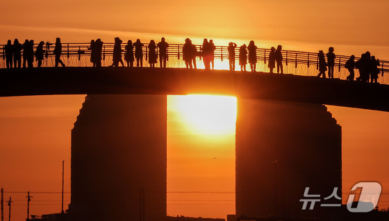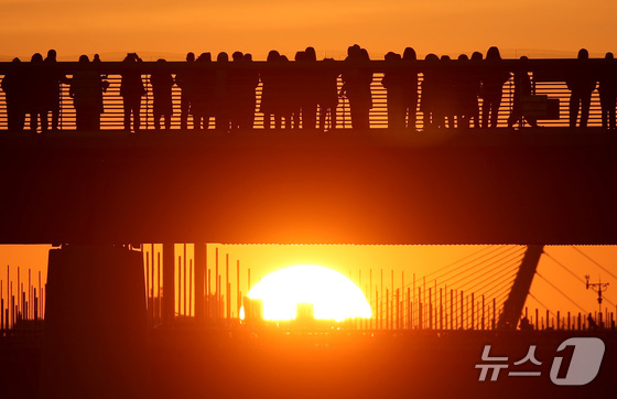 2026년 병오년(丙午年) 새해 첫 날인 1일 서울 영등포구 선유도공원 선유교에서 시민들이 첫 일출을 바라보고 있다. 2026.1.1/뉴스1 © News1 김성진 기자