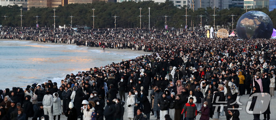 2026년 병오년(丙午年) 새해 첫날인 1일 오전 부산 해운대해수욕장에서 시민들이 새해 첫 해돋이를 기다리고 있다. 2026.1.1/뉴스1 © News1 윤일지 기자
