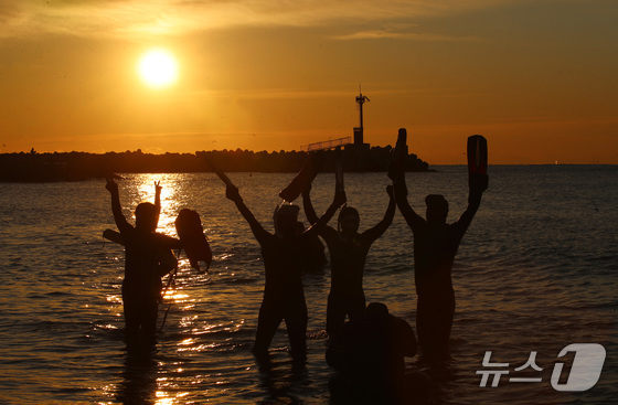 2026년 병오년(丙午年) 새해 첫날인 1일 오전 부산 해운대해수욕장에서 시민들이 새해 첫 해돋이를 감상하고 있다. 2026.1.1/뉴스1 © News1 윤일지 기자