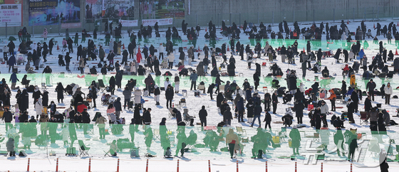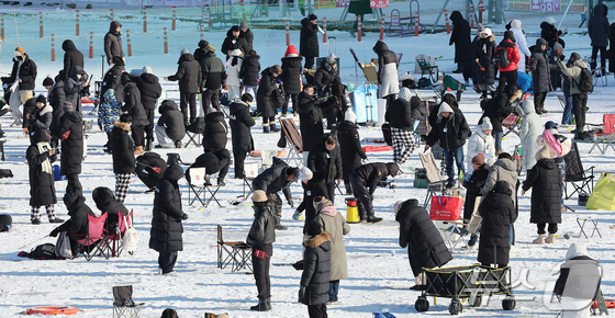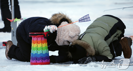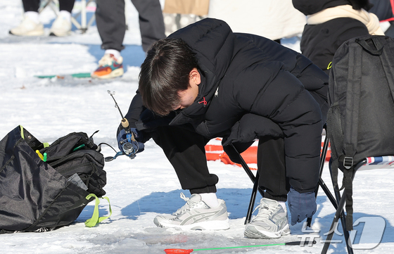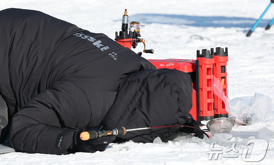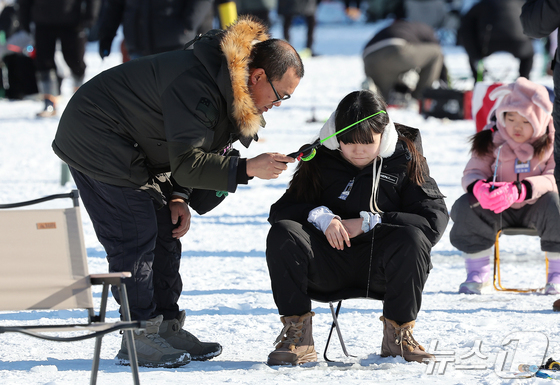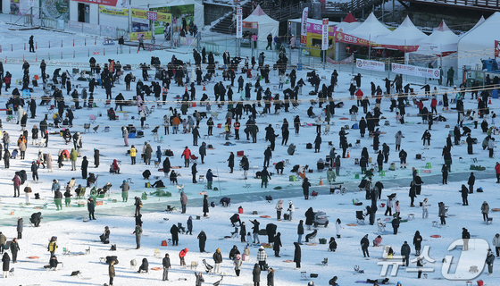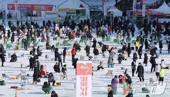 11일 강원 화천군화천읍화천산천어축제장에서 열린 2026화천산천어축제를 찾은 관광객들이 얼음낚시를 즐기고 있다. 2026.1.11/뉴스1 © News1 김진환 기자