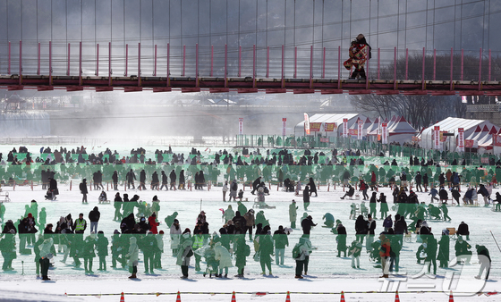 최북단 접경지역인 강원도 화천군 화천읍 화천천 일대에서 열리는 화천산천어축제는 축구장 40여 개 규모인 약 30만㎡의 거대한 얼음판 위에 조성됐다.