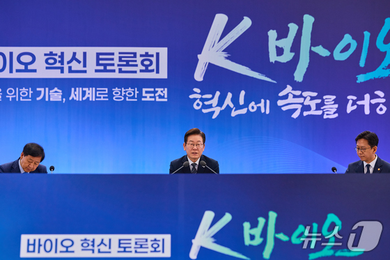 이재명 대통령이 지난해 9월 5일 인천 송도 컨벤시아 그랜드 볼룸에서 열린 '바이오 혁신 토론회'에서 발언하고 있다. (대통령실 제공. 재판매 및 DB 금지) 2025.9.5/뉴스1 © News1 허경 기자