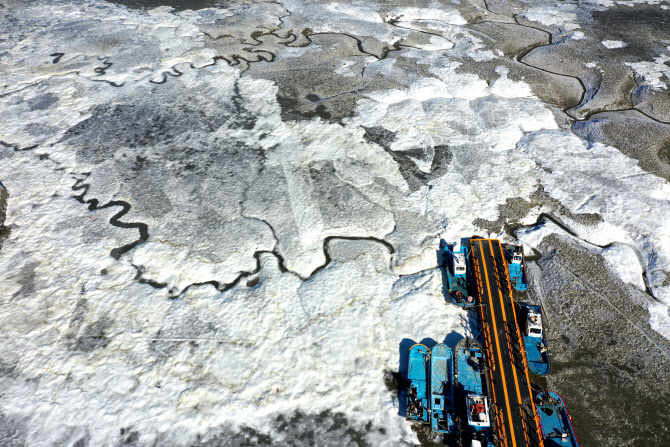 절기상 대한(大寒)인 20일 인천 강화군 분오항 앞 갯벌이 얼어 있다. (사진=연합뉴스)