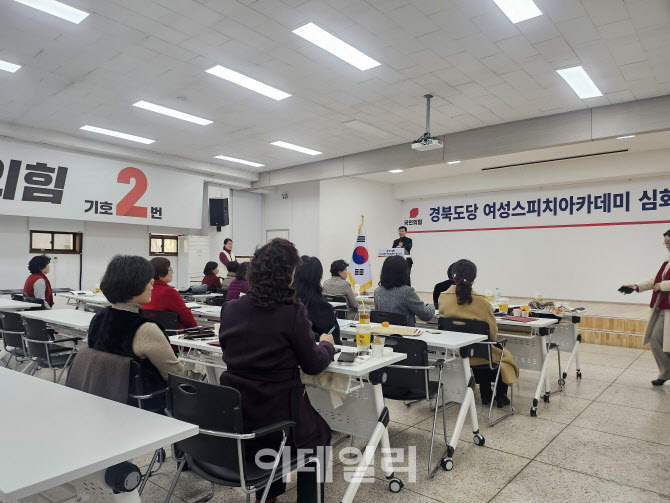 [안동= 이데일리 홍석천 기자] 국민의힘 경북도당이 지방선거를 대비한 여성 출마자 지원과 여성 당직자 역량 강화를 위해 진행한 ‘여성 스피치 아카데미 심화반’ 수료식을 20일 개최했다. 수료식에는 구자근 경북도당 위원장을 비롯해 마정연 부위원장, 김선옥 여성위원장과 수료생 등 30여 명이 참석했다. ‘여성 스피치 아카데미’는 도당 여성 핵심당직자의 선거 연설과 커뮤니케이션 역량을 체계적으로 강화하기 위한 교육 프로그램이다.