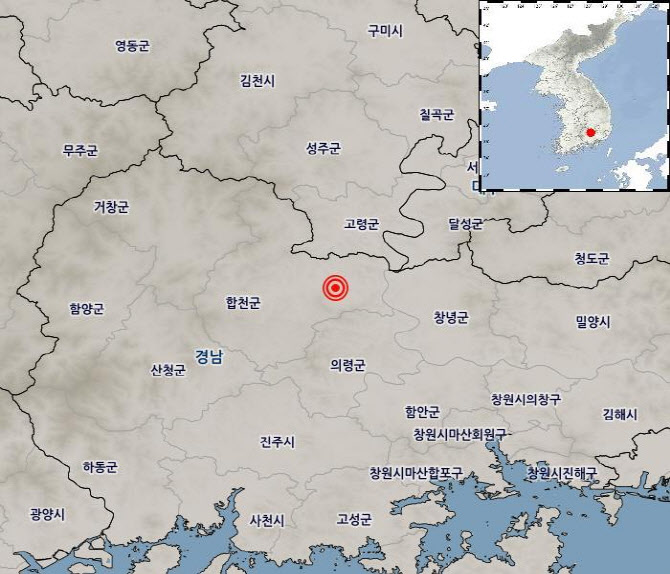 [이데일리 김민정 기자] 경남 합천군 인근에서 규모 2.1의 지진이 발생했다.
