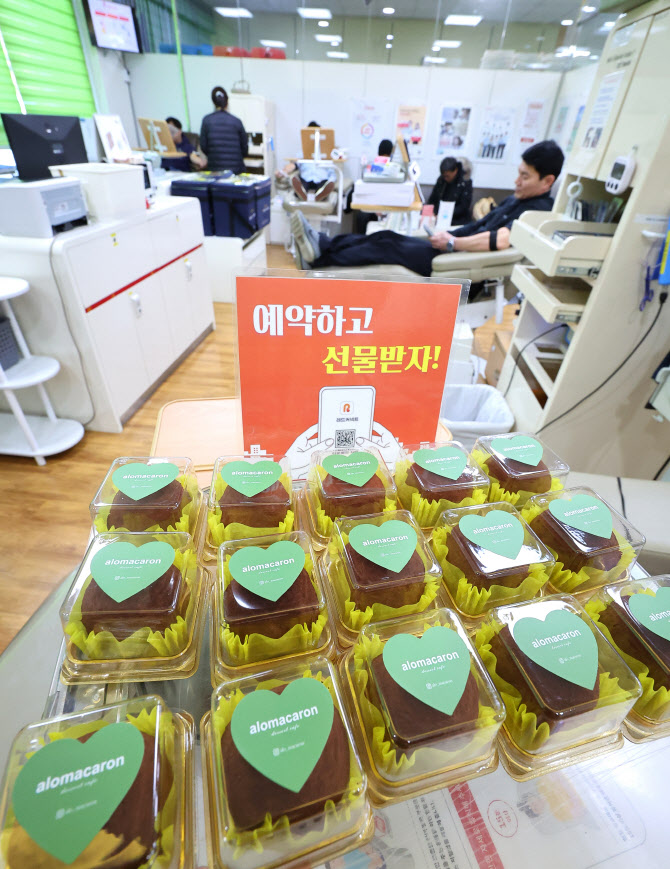 20일 인천 연수구 대한적십자사 인천지사 헌혈의 집 연수센터에서 시민들이 헌혈하고 있다. 최근 겨울철 혈액 부족으로 실시하고 있는 ‘두쫀쿠(두바이 쫀득 쿠키)’ 증정 이벤트가 화제를 모으고 있다. (사진=연합뉴스)