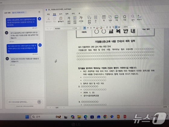 'issamGPT'를 활용해 가정통신문을 생성하는 모습. 2026.1.21/뉴스1 © News1 장성희 기자