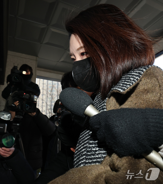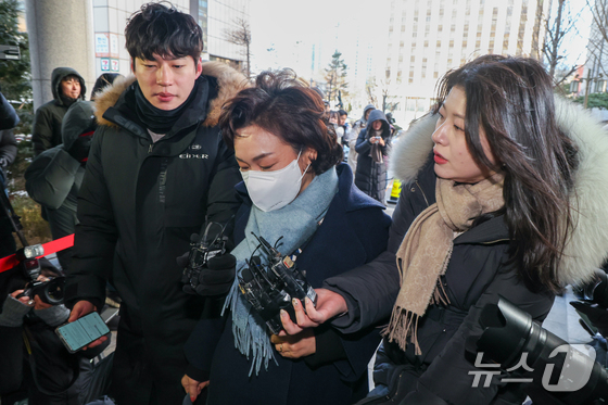 김병기 무소속 의원의 배우자 이예다 씨가 22일 오후 마포구 서울경찰청 공공범죄수사대에서 법인카드 유용 의혹과 관련 피의자 신분으로 조사를 받기 위해 출석하고 있다. 2026.1.22/뉴스1 © News1 안은나 기자