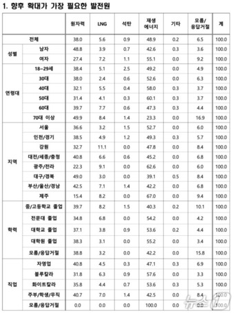 이번 조사 결과는 원전 정책을 둘러싼 사회적 인식이 단순한 찬반 구도를 넘어, 이념과 계층, 지역에 따라 서로 다른 기준으로 형성되고 있음을 보여준다는 평가다.
