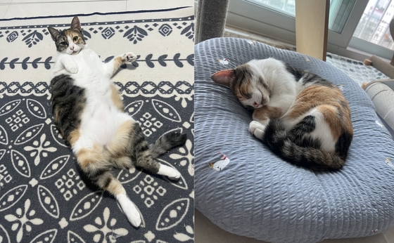 이제 새로는 오동통한 '뚱냥이'가 됐다. 길 위를 떠돌던 모습은 온데간데없고, 집 안 곳곳을 자기 자리처럼 차지한 영락없는 집고양이다. 배를 드러내고 느긋하게 눕는 모습이 행복을 보여준다.