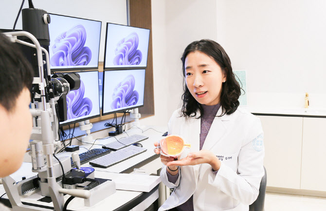 세란병원 안과센터 김주연 센터장은 “고도근시 눈은 럭비공처럼 뒤쪽이 늘어난 형태가 된다. 이때 망막층이 얇아지고 미세 손상이 누적되면 황반 주변에 변성 병변이 발생한다”며 “초기에는 증상이 미미할 수 있지만 황반변성이 진행되면 중심 시야 흐림, 변형시, 미세한 시력 감소 등이 나타날 수 있다”고 설명했다.