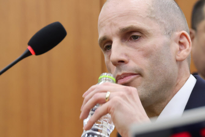 지난달 17일 서울 여의도 국회 과학기술정보방송통신위원회에서 열린 쿠팡 침해사고 관련 청문회에 출석한 해롤드 로저스 쿠팡 대표이사가 물을 마시고 있다.(사진=연합뉴스)