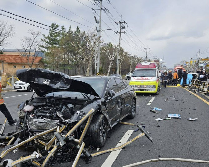역주행 사고로 파손된 차량. (사진=뉴시스)
