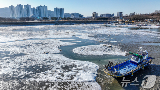 연일 동장군이 기승을 부리고 있는 가운데 28일 경북 포항시 남구 연일읍 유강리 형산강 주변이 얼어있다. 2026.1.28/뉴스1 © News1 최창호 기자