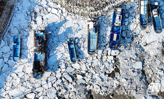 영하권에 날씨가 연일 이어진 지난 27일 인천 중구 영종도 예단포선착장의 갯벌이 얼어붙어 있다. 2026.1.27/뉴스1 © News1 이호윤 기자