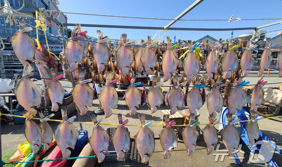 영하의 추위가 이어진 지난 27일 강원 속초 대포항에서 어민들이 널어 놓은 생선이 햇볕에 말라가고 있다. 빨래집게로 생선을 집어 놓은 모습이 이채롭다.(속초시 제공, 재판매 및 DB 금지) 2026.1.27/뉴스1 © News1 윤왕근 기자