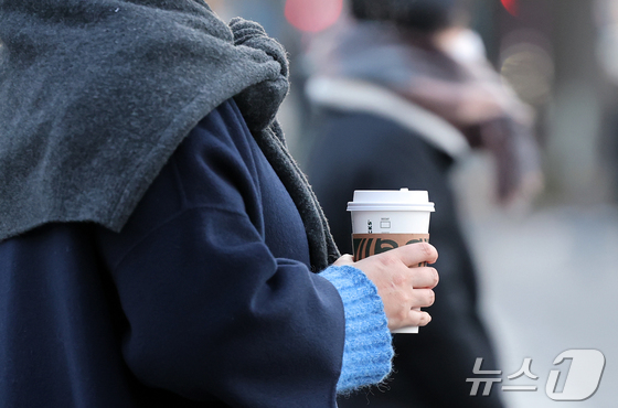 서울 아침 기온이 영하 10도를 밑도는 영하권 추위가 이어진 28일 오전 서울 종로구 광화문사거리에서 따뜻한 커피를 든 시민이 발걸음을 옮기고 있다.2026.1.28/뉴스1 © News1 김진환 기자