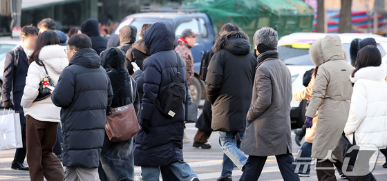 서울 아침 기온이 영하 10도를 밑도는 영하권 추위가 이어진 28일 오전 서울 종로구 광화문사거리에서 시민들이 두꺼운 외투를 입고 발걸음을 옮기고 있다.2026.1.28/뉴스1 © News1 김진환 기자