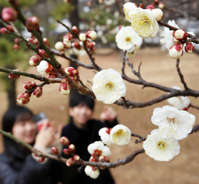 '1년 중 가장 춥다'는 절기상 대한(大寒)을 하루 앞둔 19일 부산 남구 동명대학교에서 봄의 전령사 매화가 꽃망울을 터뜨려 눈길을 끌고 있다. (사진=뉴스1)