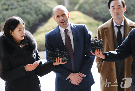 해롤드 로저스 쿠팡 한국법인 임시대표가 경찰 조사를 마치고 나오는 모습. 2026.1.31/뉴스1 © News1 강서연 기자