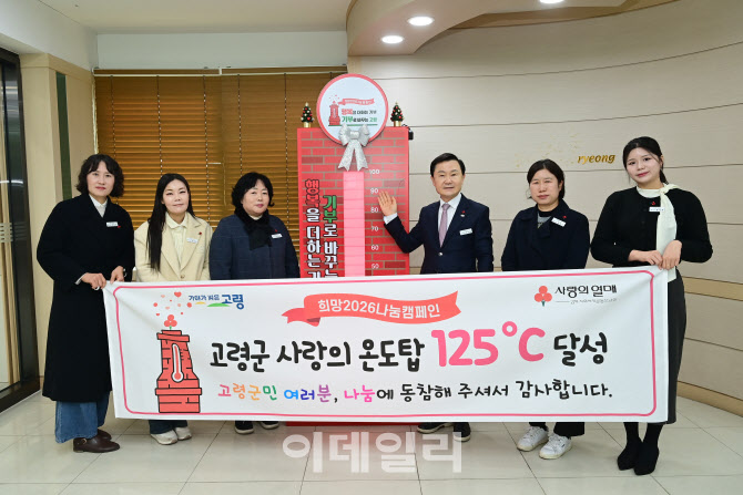 [고령(경북)=이데일리 홍석천 기자] 경북 고령군은 지난해 12월1일부터 1월31일까지 진행한 ‘희망2026나눔캠페인’ 사랑의 온도탑이 125℃를 기록했다고 3일 밝혔다. 고령군은 당초 목표액을 5억 982만7000원으로 정했지만 최종 모금액은 목표액 대비 125%인 6억 4000만원에 달했다. 특히 이번 캠페인은 시작한 지 불과 43일 만인 1월12일 5억 9000만원을 돌파하며 사랑의 온도 100℃를 조기 달성하기도 했다.