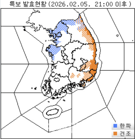 기상청은 5일 오후 9시를 기해 서울 등에 한파주의보를 내린다고 밝혔다. (사진=기상청)