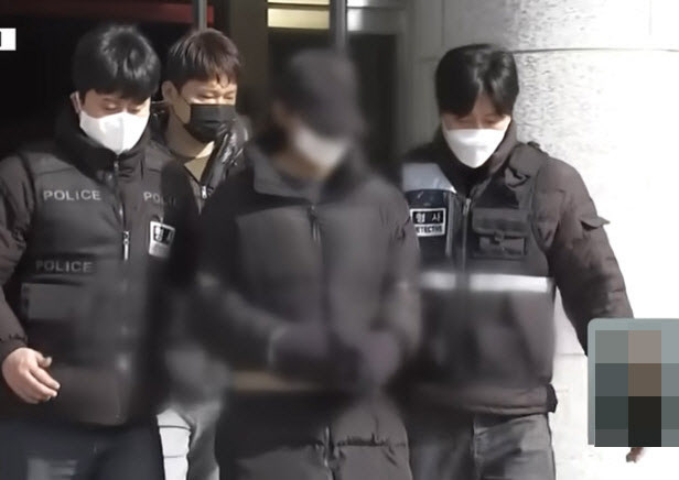 의붓형과 편의점 점주 살해 혐의를 받는 A(36)씨가 지난해 2월 14일 마스크와 검은 모자를 쓴 채 포승줄에 묶여 법원에서 나오고 있다 (사진=YTN 영상 캡처)