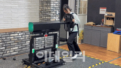 여기자도 도전했다. 첫 코스에서 한 바퀴를 돌자마자 ‘저걸 왜 못 하지’라고 생각했던 것을 반성했다. 키(1m 70㎝)보다 20㎝나 낮은 1.5m 장벽도 맨몸으론 넘었지만 4.2㎏ 조끼를 입으니 넘을 수가 없었다. 넘었다고 치고 다음 코스를 이어갔지만 “포기”라는 말이 절로 나왔다. ‘신체 저항성 기구 밀고 당기기’는 무게 추가 계속 떨어져 빨간 불이 들어오기 일쑤였다. 실제 시험이었다면 파울 시 원점으로 돌아가 다시 밀고 제시간 안에만 코스를 완주하면 된다.