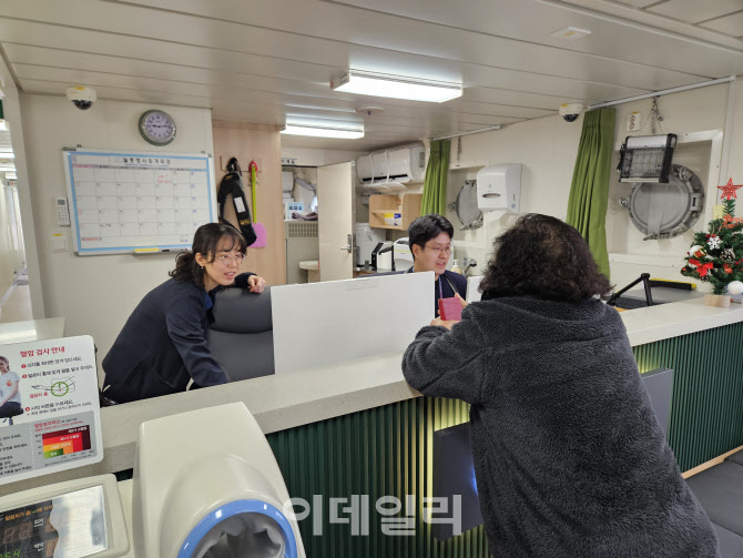 병원선 직원이 환자를 응대하고 있는 모습(사진=안치영 기자)