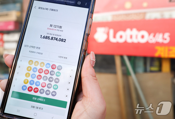 모바일 로또 판매가 시작된 9일 서울 시내의 한 복권 판매점 앞에서 시민이 휴대폰으로 로또를 구매하고 있다. 2026.2.9 © 뉴스1 최지환 기자