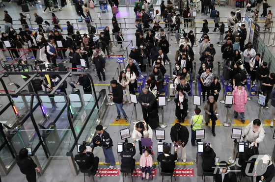 지방 공항도 붐비기는 마찬가지다. 김해공항은 연휴기간 24만 265명이 이용할 예정이다. 하루 평균 이용객은 4만 44명으로 역대급 황금연휴로 꼽혔던 지난 추석 연휴 하루 평균 이용객(3만 2993명)보다 약 21% 증가한 수치다. 국내선은 연휴 동안 하루 평균 이용객이 1만 6580여 명이 이용할 것으로 예상된다.