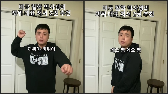 철학맨의 릴스는 학문과 놀이를 넘나든다. 알베르 카뮈의 명저 이방인을 소개하는 영상에서는 유행 중인 '윤정아' 밈을 개사해 "카뮈야 카뮈야~ 왜요 쌤 왜요 쌤~ 햇볕 뜨겁다고 사람 쏴 죽이지 말랬지? 죄송해요 쌤~"이라며 춤을 춘다.