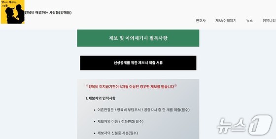 양육비해결하는사람들(양해들)의 양육비 미지급자 제보란. (양해들 홈페이지 갈무리)